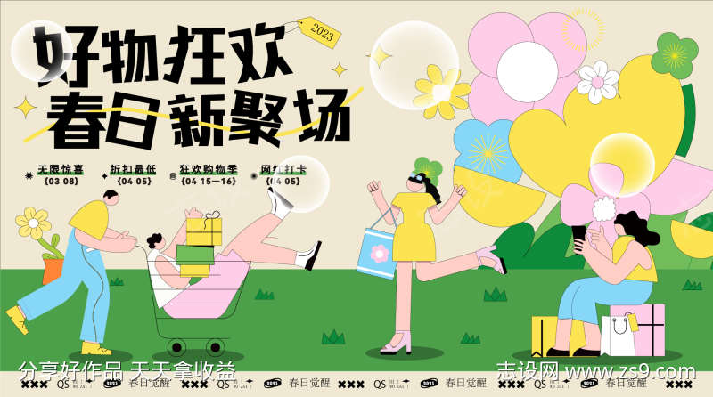 地产商业商场春夏花花插画活动主画面