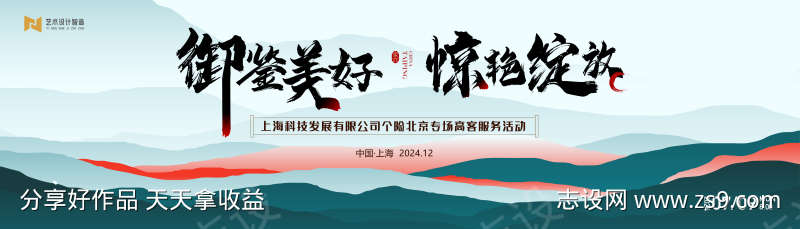 高端传统山水手绘国潮中式活动背景板kv