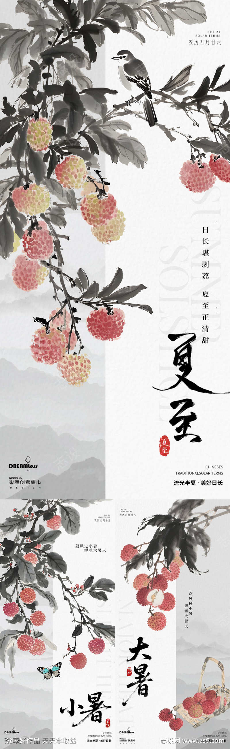小暑大暑夏至荔枝插画扁平夏季清新蓝天