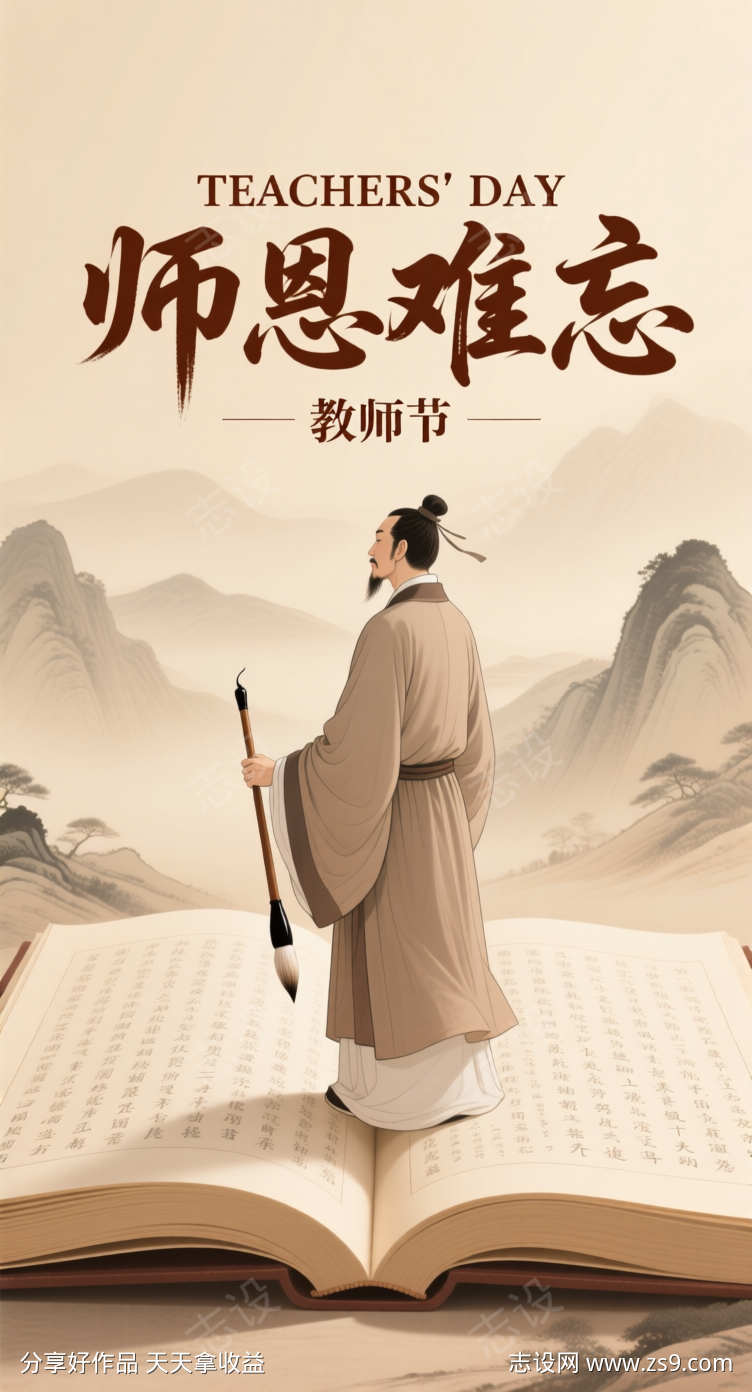 中国水墨画教师节海报