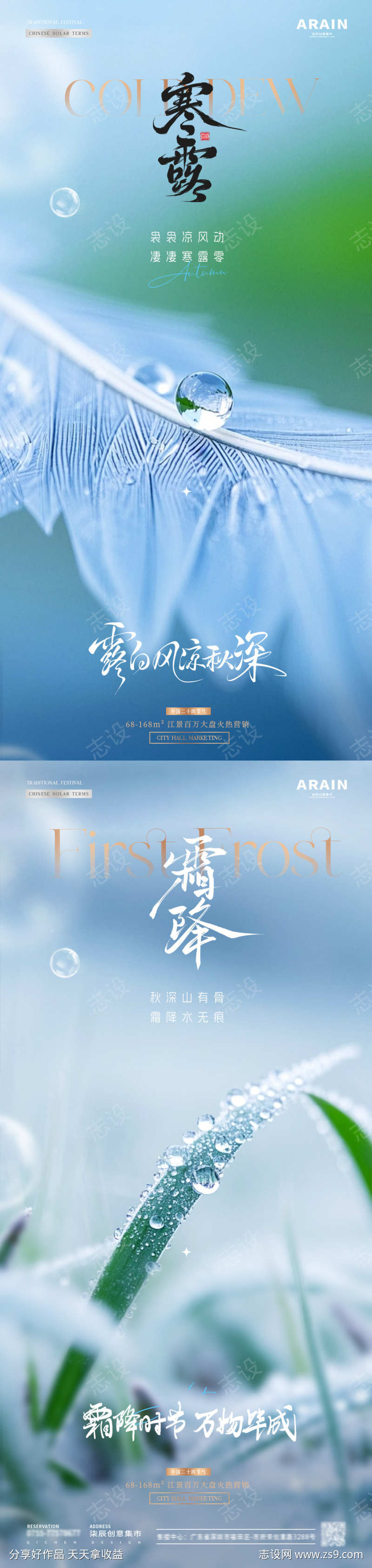 地产寒露霜降羽毛露珠海报